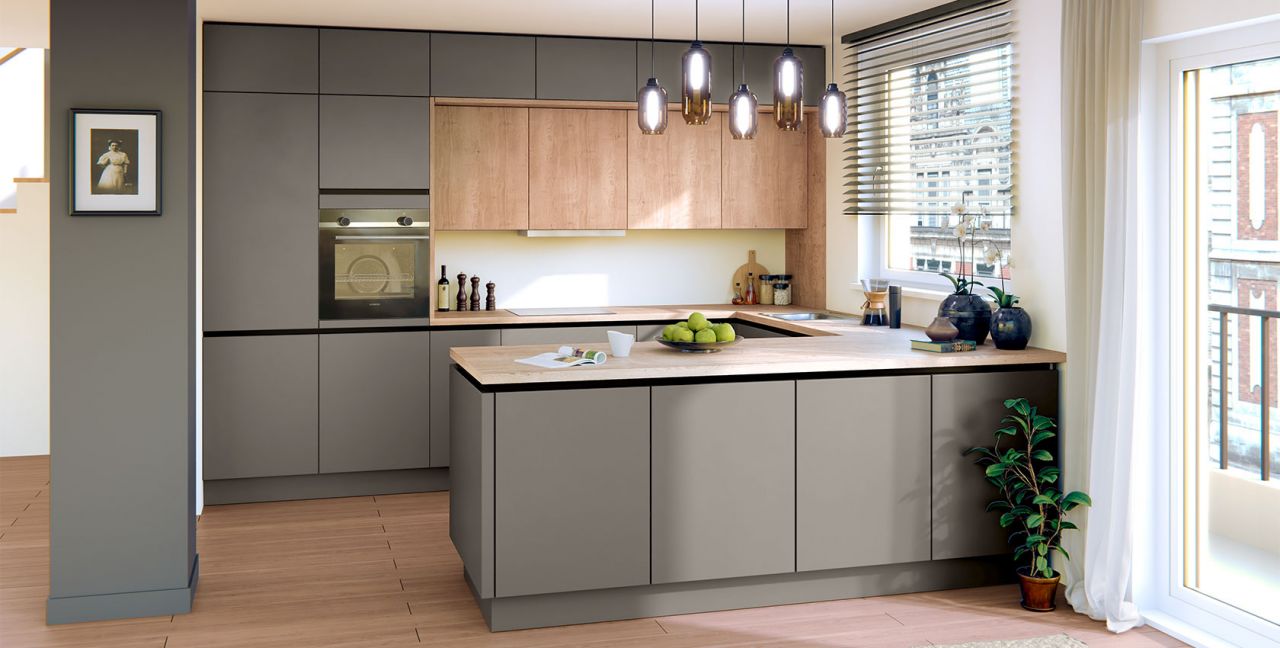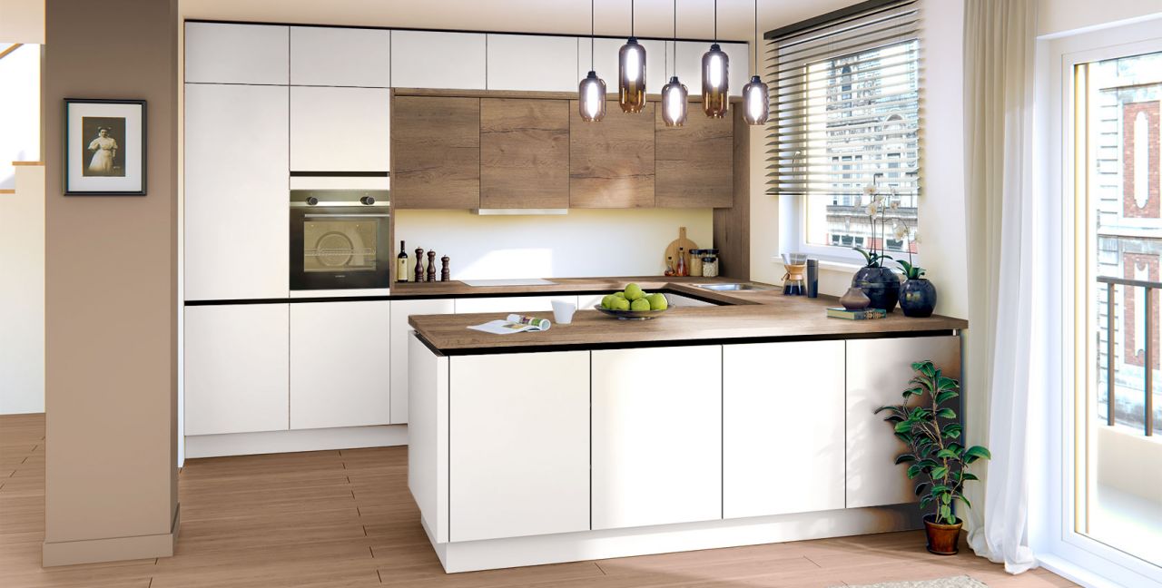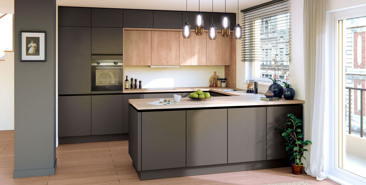 Inclusief inbouwoven zwart Siemens HB234ABB3 Energieklasse A+, keramische kookplaat Siemens ET645HN17E, platte afzuigkap Elica ELITE 14 60-D Energieklasse D, koelkast Laurus LKG88E Energieklasse E, inbouw-designspoelbak Elleci Logik 300, XL-kasten, onderkast met uittrekinterieur.