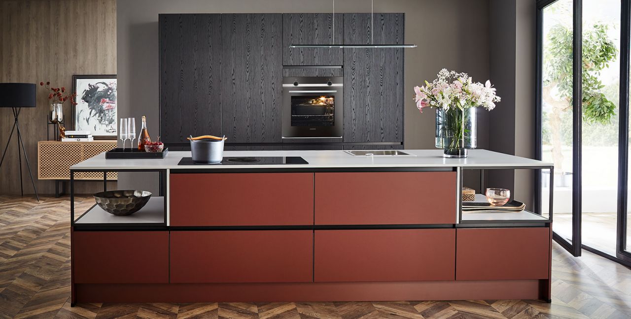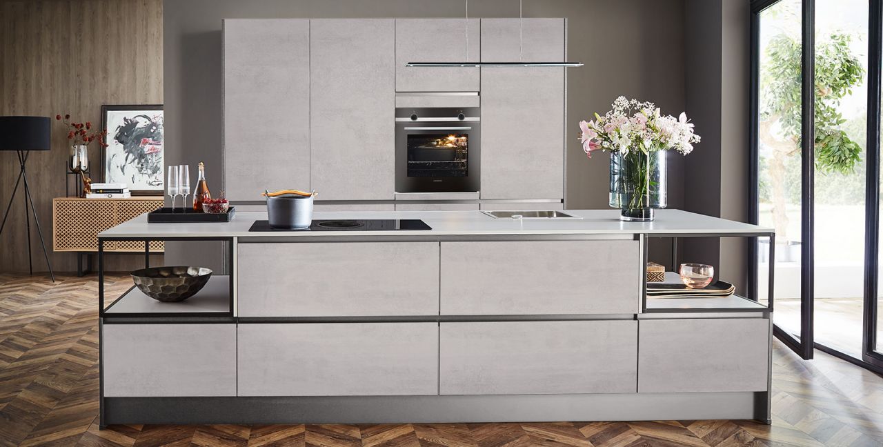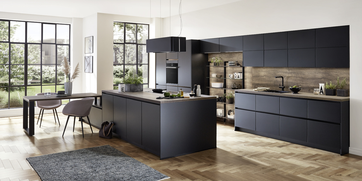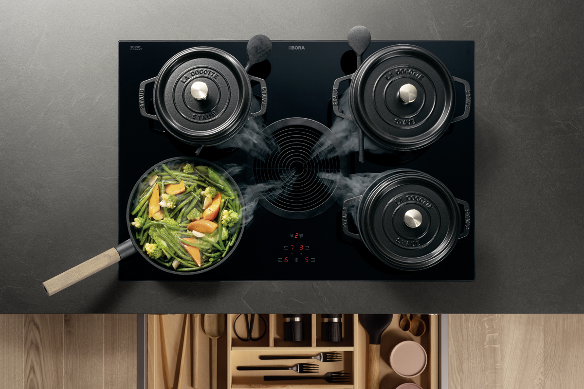 Inclusief inbouwoven zwart Siemens HB234ABB3 Energieklasse A+, keramische kookplaat met inductie en werkbladafzuiging (circulatielucht) Bora GP4U, koelkast met ****vriesvak Progress PK0855 Energieklasse E, RVS-inbouwspoelbak Rodi BOX LUX 46, onderkasten met grote laden, open kasten Smartcube.